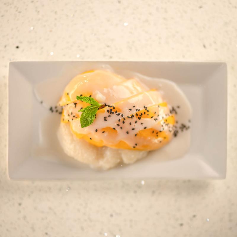 Lemongrass, galangal broth with mushroom, coconut milk, mushrooms, lime juice, and cilantro.