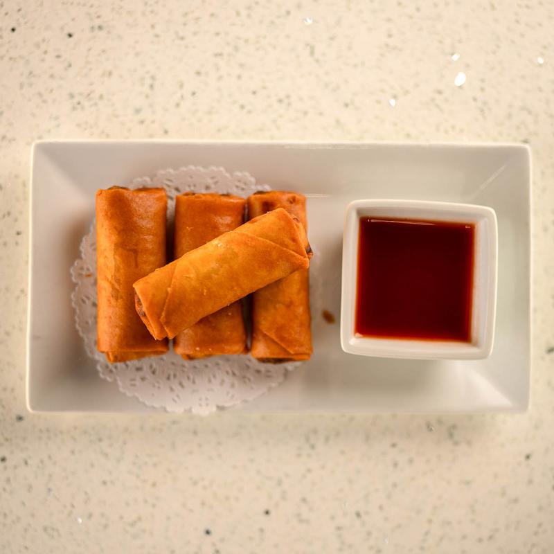 Crispy spring rolls filled with shredded vegetables and glass noodles with sweet & sour plum sauce.